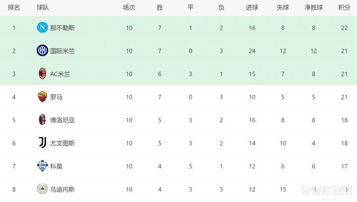 截至目前,拿到3分之后,AC米兰重新回到意甲前三的位置,而且他们仅仅落后榜首的那不勒斯1分。从目前来看,本赛季意甲冠军大概率将在那不勒斯、国米、AC米兰、罗马和尤文这5支球队当中产生,在换帅之后,尤文已经迎来2连胜,他们重新回到了争冠的行列当中。